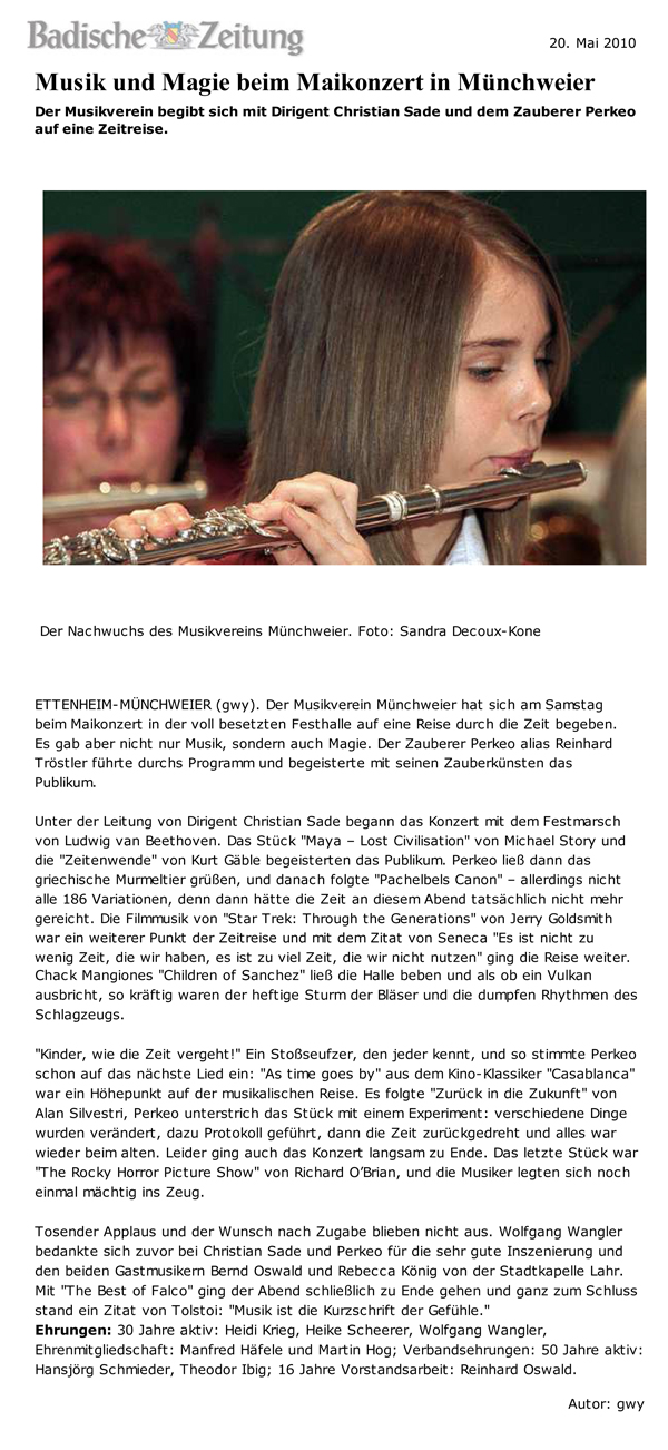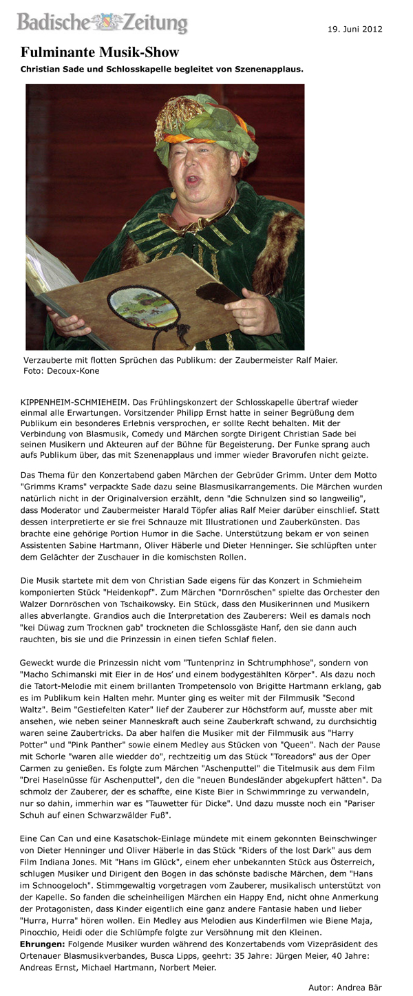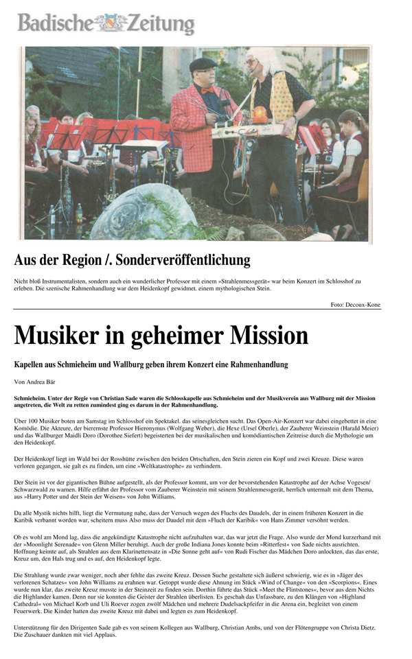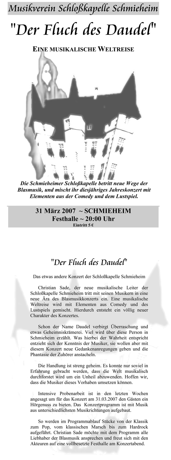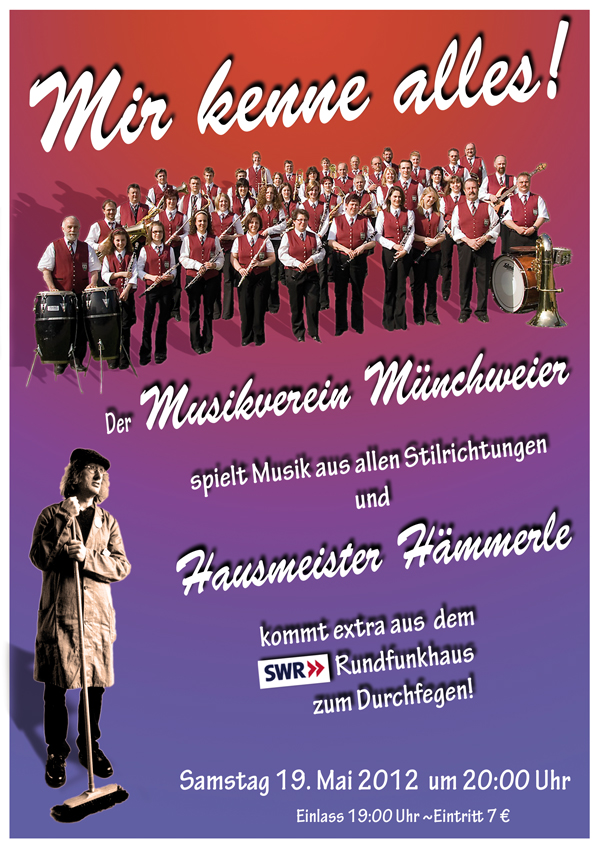 | In Schmieheim startete der erste Versuch eines Blasmusikkonzerts mit Theater-Moderation. Außerdem wechselte ich vom Musikverein March-Buchheim zum Musikverein Münchweier. |