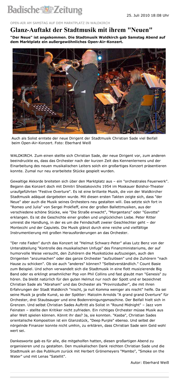 ich die Leitung der Stadtmusik Waldkirch. Zu meinem Einstand im Juli