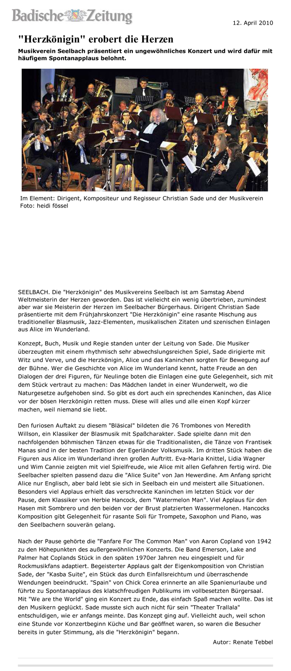 in Seelbach das Bläsical "Die Herzkönigin" statt,