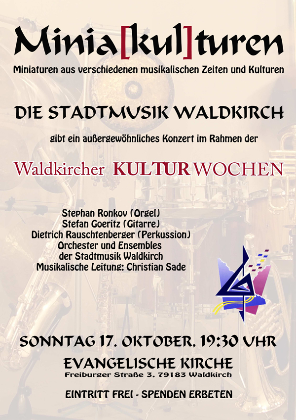 Später, im Oktober, dann das "Kammermusik"- Konzert "Miniakulturen" und im Dezember das Bläsical "Märchen für alles". |