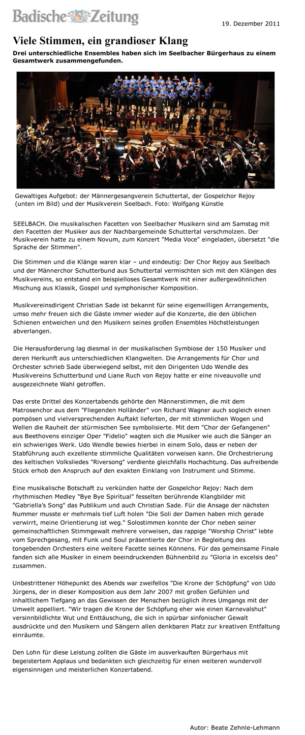 noch?" mit aufzuführen. Im Dezember fanden zwei Aufführungen von "Media Voce", einem großartigen Konzert-Event mit zwei Chören und insgesamt 150 Mitwirkenden statt. |
