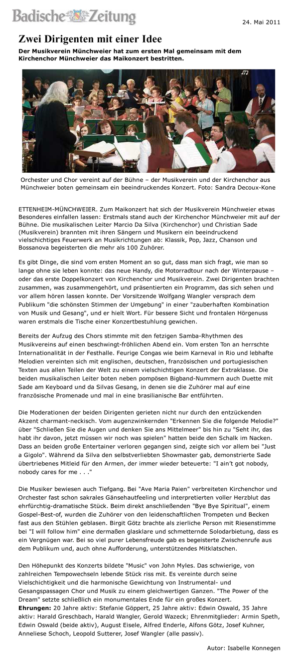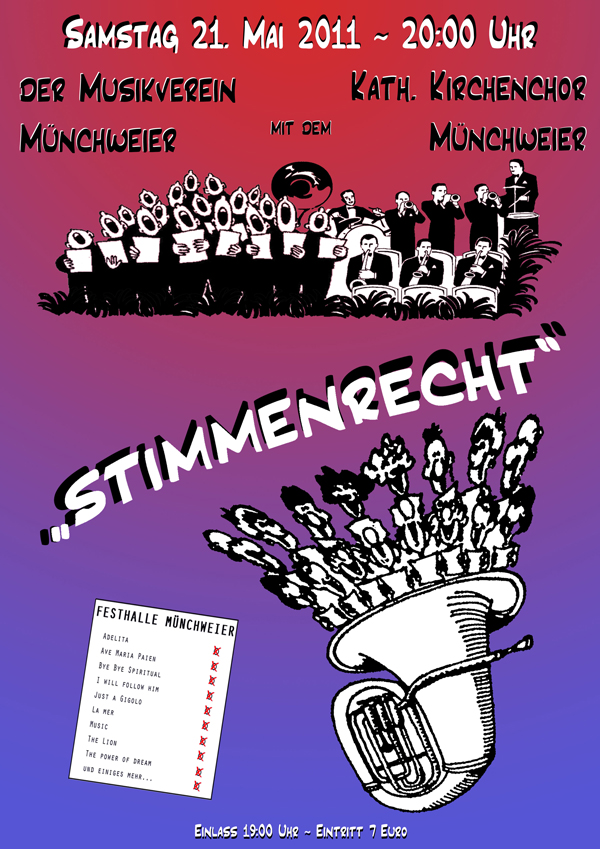| 2011 spielte der MV Münchweier "Stimmenrecht", ein Konzert mit dem Münchweierer Kirchenchor. |