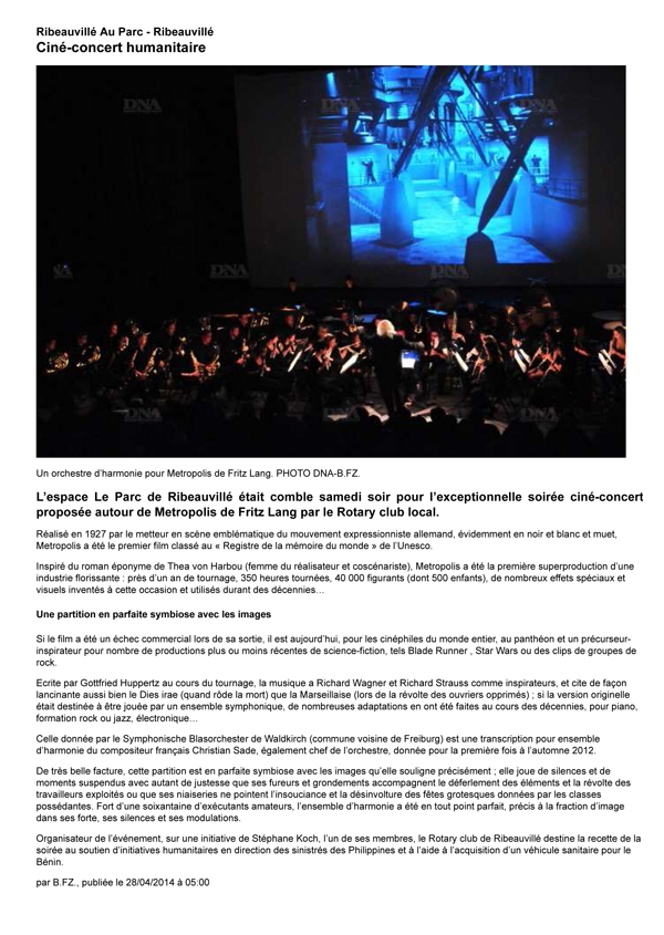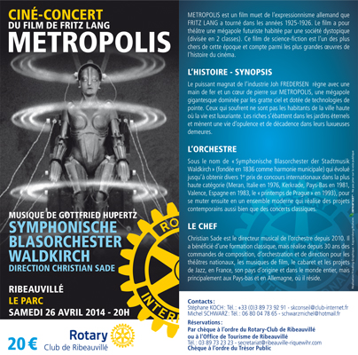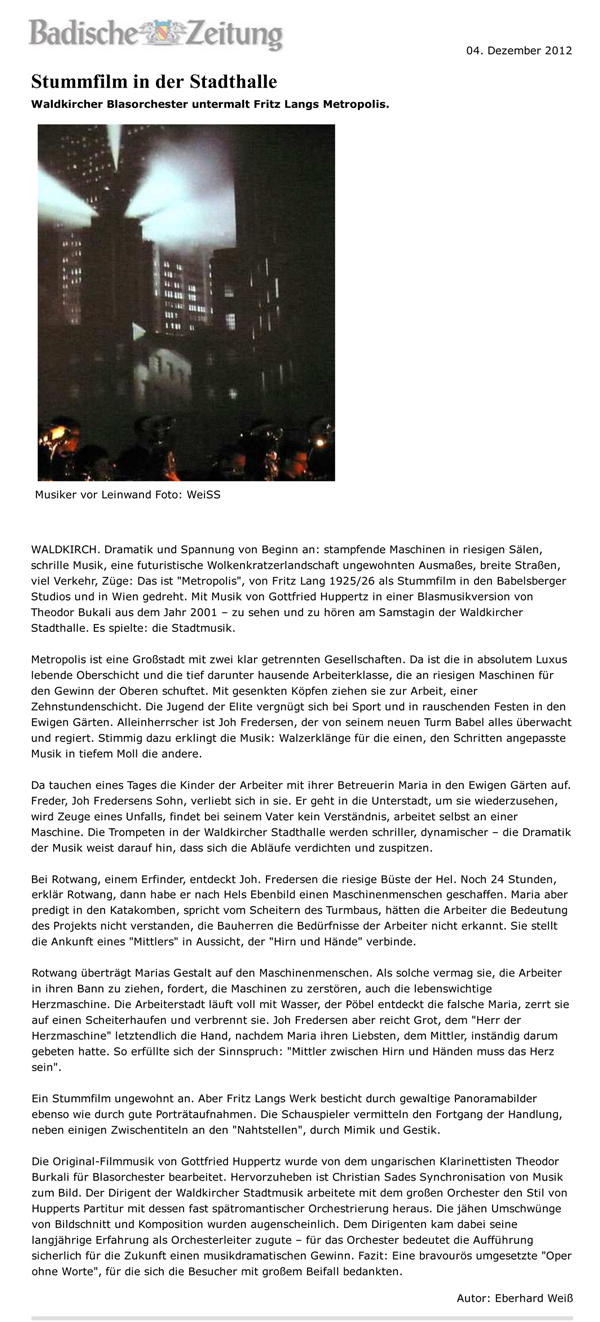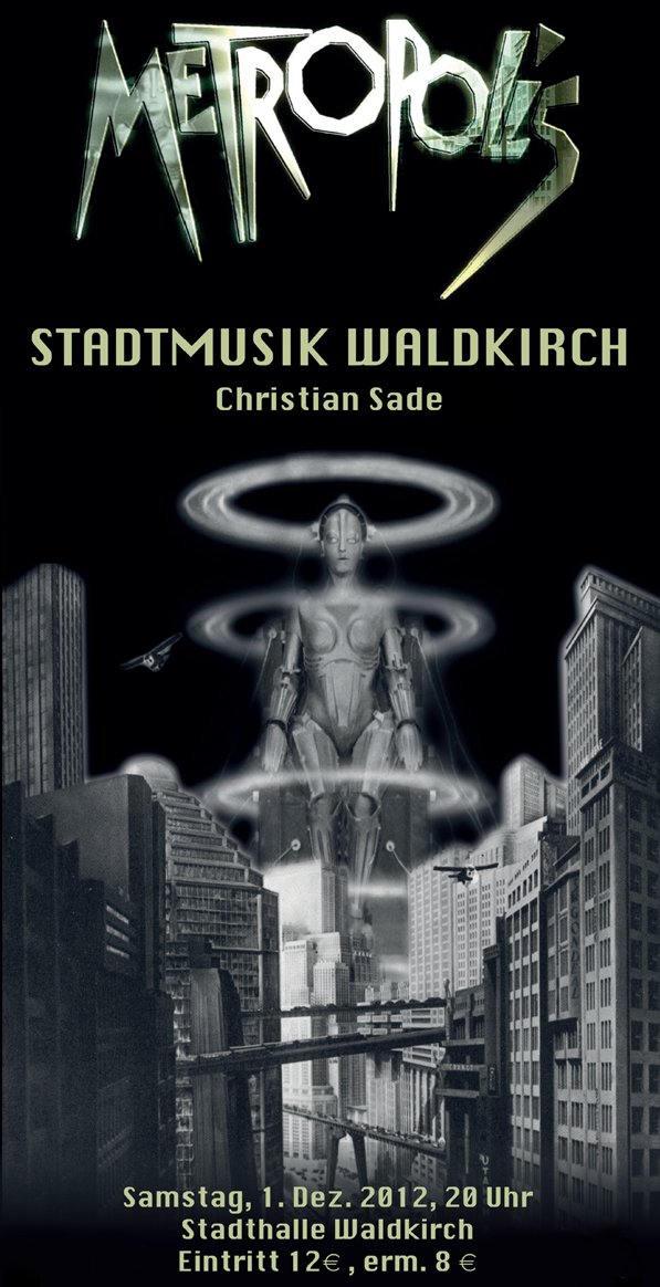 vollständigen Fassung aufgeführt. Später im Jahr erhielten wir einen erwähnenswerten Erfolg beim Stadtmusiktreffen in Herbolzheim und am 1. Dezember fand die Live-Aufführung der Musik von "Metropolis" statt, synchron zu Filmvorführung. |