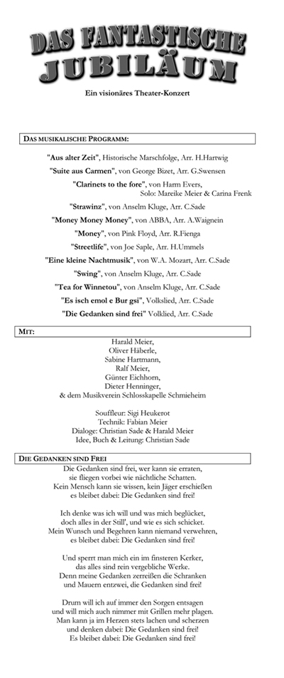 | Im Mai kam in Münchweier fürs erste Mal "De Hämme bi de Gelruewe", und wir zeigten eine Mischung aus Jazz und Musical, mit Orchester und einem Jazzquartett. |