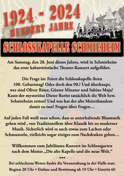 | In Schmieheim feierte man bereits im Jahr 2024, "Das Fantastische Jubiläum", einen Zeitsprung mit witzig-düsterer Zukunftsvision und unterhaltender Blasmusik. |